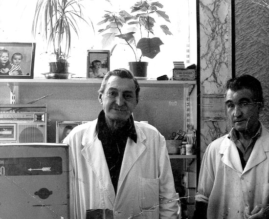 Joey & Claudio: at neighbouring cafe owned by the Pellicci's (circa 1970)
