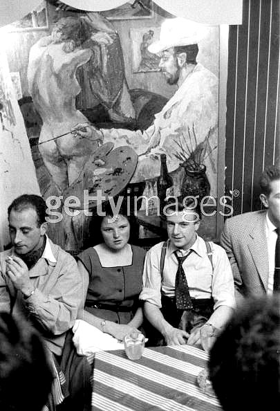 Every Saturday night the London art schools took it in turn to put on a jazz concert and dance. One week it was Chelsea, next week St Martins, followed by The Central, Goldsmiths or Camberwell. It was 1954 and traditional jazz that was the art students' favourite sound. In spite of rock 'n roll having just arrived in the shape of Bill Haley (Elvis would follow) there was a backlash against contemporary American culture by some sections of British youth. Bohemian students had adopted as their own New Orleans jazz and blues from some 50 years earlier, a musical form totally ignored by their peers in the States. The original pure forms had however become slightly diluted and anglicised to become 'skiffle'. It was propagated by the likes of Ken Colyer (who had joined the merchant navy to get to New Orleans) Lonnie Donnegan and Acker Bilk. Soon every coffee bar had a skiffle group - a couple of guitars, (acoustic, of course), a single snare drum, a tea-chest base backing up the vocalist (harmonica optional), accompanied by plenty of wailing on about how badly black folks was treated in the cotton- fields down South. The great thing about 'trad jazz was that it was highly syncopated music and once the band struck up you had to get those feet onto the dance floor. Teddy Boys, who were rock 'n roll fans, jived; so too 'modernist' fans of be-bop and Charlie Parker. But 'trad jiving was by far the most exuberant and athletic variant, being a modified form of jitterbugging and lindy-hopping. It was at one of the St Martins art school dances - whilst jiving of course - that I met Polly. I was a pretty good jiver, having picked up the moves in visits to that sterling outpost of trad', the Wood Green jazz club. Polly and I were kindred spirits. She was like a whirlwind, leaping about the floor in great looping strides, always on the beat and with great arm movements. Dressed in black from head to foot, she had short cropped black hair, black knitted sweater, black tight trousers and, of course, dark glasses. The band that night were The Alberts, a group of very eccentric intellectuals in Edwardian striped blazers, steel rimmed glasses, long beards and moustaches. They were fronted by a diminutive clarinet player who had at his feet, or rather his waist, his huge pet St Bernard dog. Half way through one number he suddenly stopped playing and hurled his 'liquorice-stick' into the heaving throng of jivers and then instructed his canine chum to 'fetch'. The animal dived into the crowd, which parted like the Red Sea, to retrieve the instrument and returned to his master who continued to play the saliva-soaked clarinet as though nothing had happened. Art school dances always closed at eleven and I offered Polly a lift home on my Lambretta, but said we would stop at a coffee bar I had heard about, the Gyre & Gimble. The G & G (not being much of a reader I had no knowledge of the connection to the Lewis Carroll poem) was in John Adam Street at the side of Charing Cross Station. A dingy narrow doorway, with the name of the establishment in barely-legible swirly lettering, led down stairs which opened up into a very large basement area. The smoky dive had low crude wooden tables and chairs and the whole place had a rustic feel. A sort of menu was scrawled on one of the dark walls, but I had no appetite for eating there. Most of the customers looked as though they had not seen daylight for some time. The coffee however was very good and in generously large cups. Later, a guitar player, called appropriately Johnny Guitar, played some very good solo pieces. I took Polly home. She lived in a huge house in Paulton's Square, just off the King's Road, her father being a top civil servant who drove about in a 1935 open top green Bentley racer. I was impressed. Along with having a very passionate affair, Polly and I became regulars at the Gyre & Gimble and joined an informal group of pseudo-intellectuals who used to meet there on Sunday evenings. They had dubbed themselves The New Day Dadaists and in the spirit of Marcel Duchamp discussed ideas to mock the art establishment. They even got as far to putting out an advertisement for an exhibition of Pre-Raphaelite painting at a derelict house in Bloomsbury. Really radical. I got very serious about the delightful Polly, but she was a bit of a free spirit as were in fact her whole family. One day I was walking down the King's Road to go to her house when the Bentley pulled up beside me. Polly jumped out and kissed me. "Steve," she announced, "we are moving to France." With that she jumped back into the green monster and off it went into the mists of Chelsea. I never saw her again - and I never went back to the G & G.