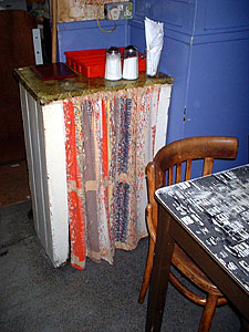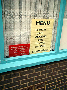 Hidden in what once must have been a thriving little community on the edge of Hoxton (and close by Spitalfields market) this little find is very similar to the old Tea Rooms as was. Blue painted wooden exterior, Helvetica sign, net curtains and inside an amazing worn old wallpaper-patterned interior: a parlour full of old Formica tables, worn Lino flooring and a proper caff counter & signage. A great find which can't be long for this word in an area that is fast being Loft-ed and St*rbucked street by street.